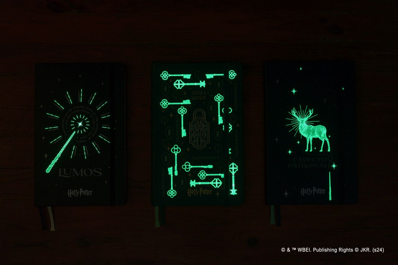 Luminosi e magici. Non avrebbero potuto essere altrimenti i nuovi Moleskine realizzati per celebrare Harry Potter. Fanno parte della The Harry Potter Spells Collection, una selezione che comprende due taccuini e due agende dedicati al maghetto creato da J.K. Rowlings. Le copertine sono rigide con dettagli fosforescenti. Sì, se li usate al buio si illuminano. Poi, hanno i classici angoli arrotondati dei Moleskine, i taccuini amati da Van Gogh, Picasso, Chatwin ed Hemingway, e le pagine color avorio, in carta acid free. Immancabile, poi, il messaggio che si trova all’inizio di ogni taccuino: “In caso di smarrimento, si prega di restituire a…”