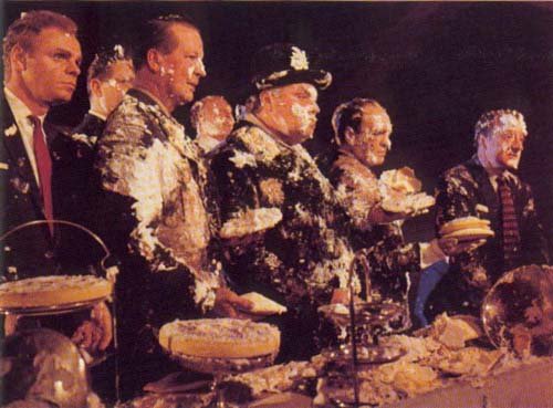 “Il Dottor Stranamore si concludeva con Peter Sellers, il presidente americano, ed io seduti sul pavimento, mezzi sprofondati nelle torte di crema, che facevamo castelli cantando “For he’s a jolly good fellow” (perché è un bravo ragazzo ndr), e il buon tizio in questione era il sinistro Dr. Stranamore. Questa sequenza venne girata per quasi due settimane e dovette costare diverse centinaia di migliaia di sterline, ma al momento del montaggio Stanley decise che era completamente stonata rispetto al tresto del film e, benché fosse straordinariamente divertente ed efficace, decise di tagliarla. Ha dovuto soffrire molto prima di giungere a questa decisione, ma la sua integrità è tale che scommetto ebbe ragione“.